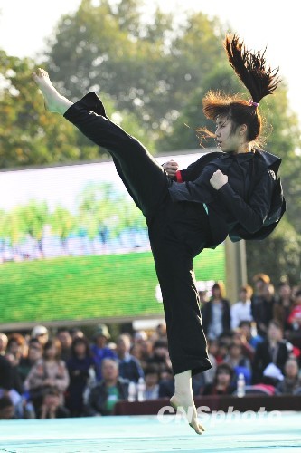 11月4日,作为“2009中国杭州·韩国文化周”主要项目之一的韩国跆拳道表演活动在浙江杭州西湖边的涌金广场上举行,来自韩国著名跆拳道团队K-tigers(韩国虎)的40余名青少年跆拳道高手以跆拳道、极限运动、街舞、情景剧等多种表演形式,对传统体育项目进行了现代、时尚的演绎,展示了韩国体育文化的独特魅力。