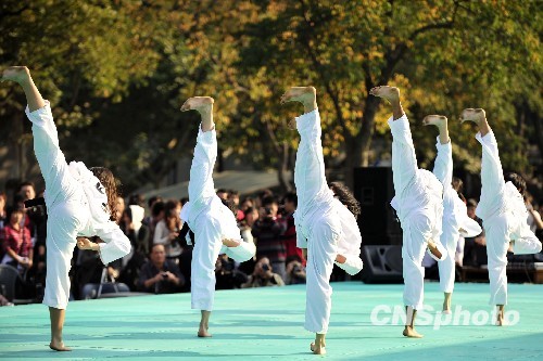 韩国跆拳道高手在杭展一显身手。中新社发 李忠 摄
