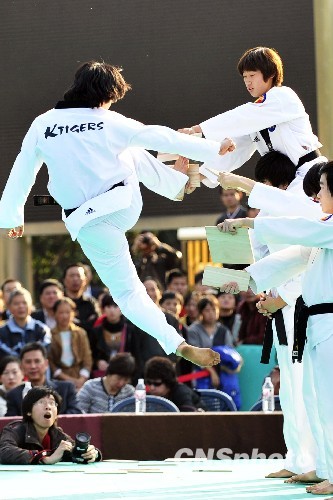韩国跆拳道高手在杭展一显身手。中新社发 李忠 摄