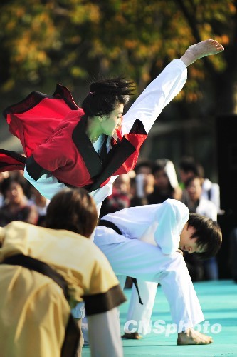 韩国跆拳道高手在杭展一显身手。中新社发 李忠 摄