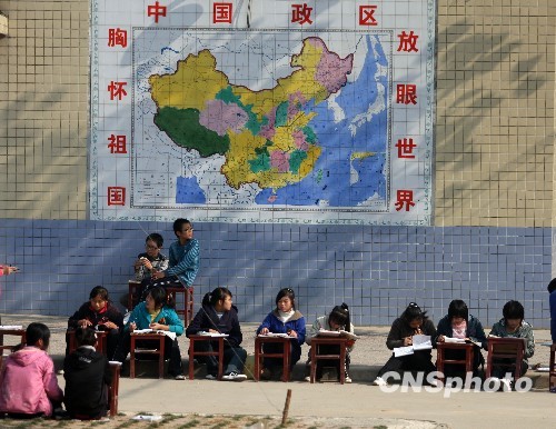 图:陕西高陵学生们露天上课避震(2)——中新网