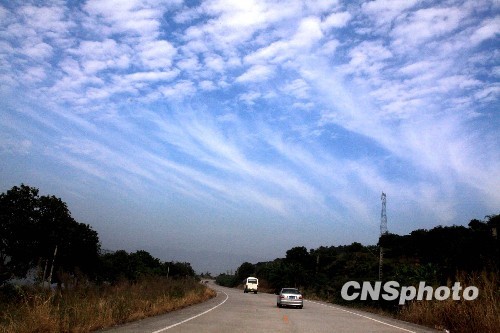 11月7日上午,记者看见福州天空呈现的毛卷云极为奇特,它们有的形如丝条、有的形如羽毛、有的形如鱼鳞、有的又像马尾……千变万化、美不胜收的毛卷云一直持续到当日13时30分许才逐渐淡去。
