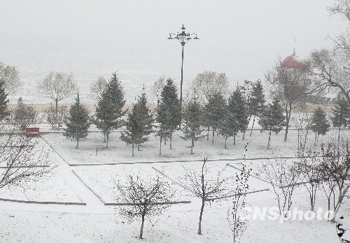 图:黑龙江黑河迎来首场雨雪寒潮天气(2)