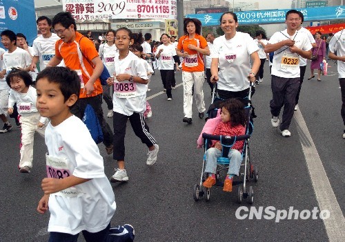 11月8日,2009杭州国际马拉松赛在杭州黄龙体育中心鸣枪开跑,1万多名国内外的专业马拉松选手、跑步爱好者和市民参加了比赛,其中有不少的学生和国内外小朋友参赛。比赛分为全程马拉松、半程马拉松、短程马拉松、小马拉松、家庭跑、情侣跑等项目。