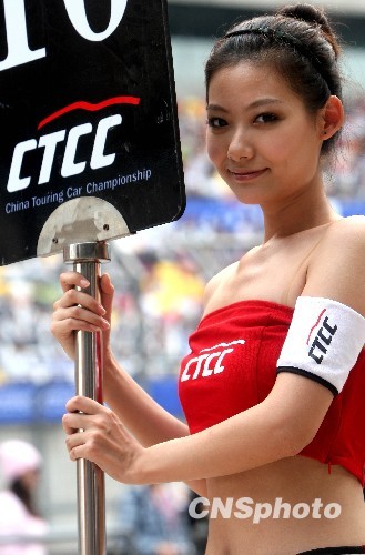 中外美女助阵中国房车锦标赛。中新社发 赵振清 摄