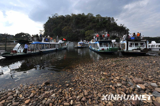 11月8日,游船在狭窄的漓江航道上行驶。陈瑞华 摄