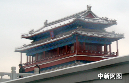 今天(10日)凌晨,随着一道闪电一阵惊雷,漫天白雪悄然飘下。一夜飘雪,使今早的京城笼罩在一片白茫茫的大雪中。中新网记者 金硕 摄