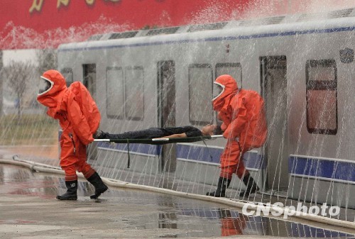 图为消防队员模拟处置轻轨事故现场。中新社发 袁云 摄