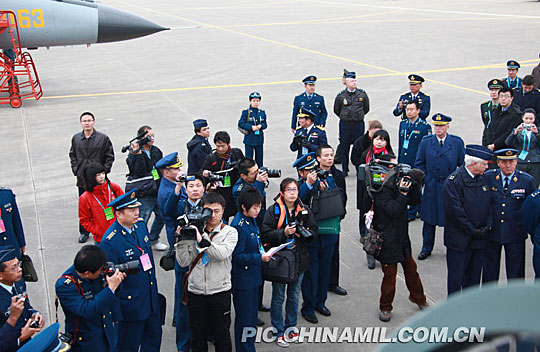11月9日,中外记者争相报道多国空军代表参观空军航空兵某师。谭超摄