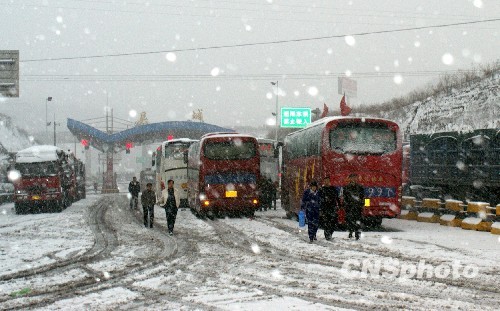 山西吕梁突降暴雪滞留两千余车辆。中新社发 高增平 摄