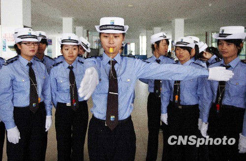 11月11日,浙江国际海运职业技术学院的24名女子交警志愿队正式上岗。据了解,这批女子交警是在该学院新入学的大学新生中挑选的,身材均在1.64米以上。经过专业培训后,她们每周三、周六下午在舟山新城部分交通路口值勤,协助当地交警开展交通秩序维护、交通安全宣传工作。 中新社发 胡社友 摄