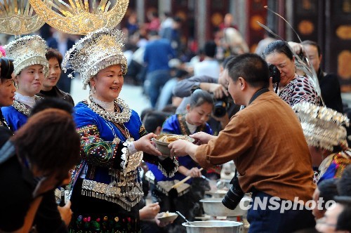 组图:贵州雷山苗年 苗族女性盛装迎宾(5)