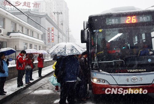北京迎来强降雪天气,市民冒雪出行。中新社发 郑雄增 摄