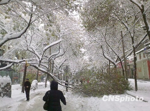 郑州遭大雪袭击,民众出行难。中新社发 史玲 摄