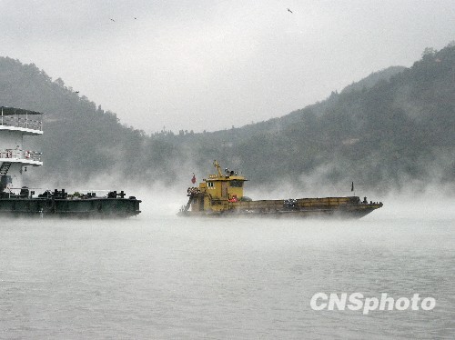 雾中行舟宛如仙境。中新社发 韩玉洪 摄
