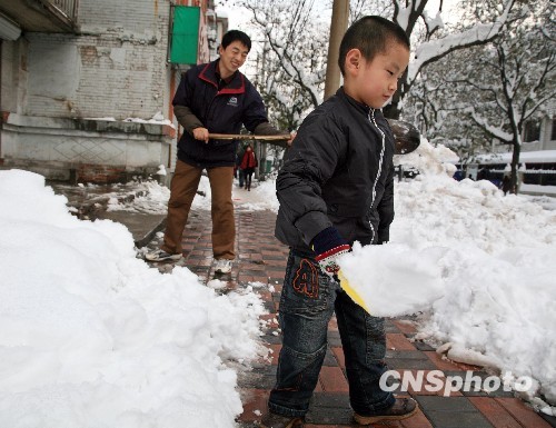 11月12日,河北省石家庄市连续几日的暴雪终结,民众走上街头铲雪除冰。据石家庄气象部门统计,截至当日8时,该市降水量已达92.1毫米,积雪深度约为55厘米,超过有气象记录以来极值。