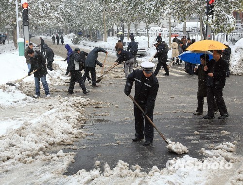 图:石家庄暴雪终结 民众自发铲雪