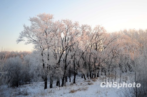 图:中俄界河黑龙江黑河段出现雾凇景观(2)