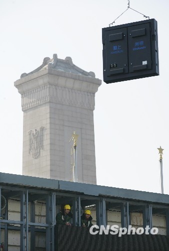 组图:天安门广场巨型液晶显示屏开始拆除(2)