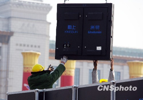 组图:天安门广场巨型液晶显示屏开始拆除(4)