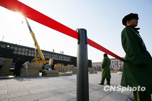 组图:天安门广场巨型液晶显示屏开始拆除(6)