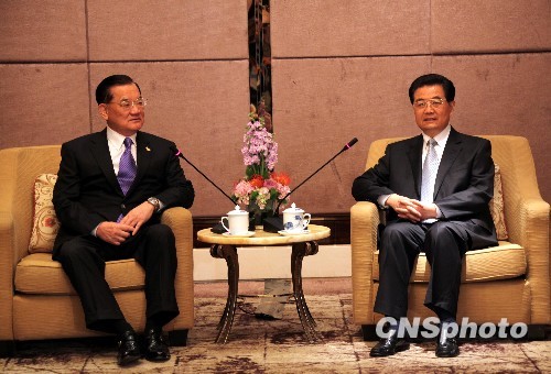 11月14日上午,中共中央总书记胡锦涛在新加坡会见中国国民党荣誉主席连战。中新社发 周兆军 摄