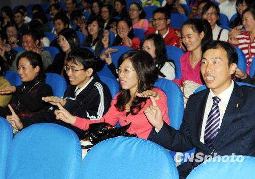 11月14日,200多名单身青年男女在福州一影城首次举行的电影相亲会上,通过参与互动游戏、观看现场播放的单身青年男女资料、观赏爱情题材影片系列活动,寻觅心仪的恋爱对象。中新社发 刘可耕 摄