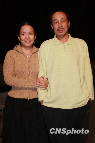 11月14日,孙海英、吕丽萍夫妇共同主演的易卜生名剧《培尔·金特》在河北承德话剧团举行媒体探班。这是这对“激情燃烧”的夫妇首次携手重返话剧舞台。孙海英在剧中将演绎好色多变的浪荡子培尔·金特的一生。吕丽萍将在剧中一人分饰两角,扮演培尔·金特慈祥的母亲和美丽温柔的妻子索尔薇格。图为孙海英、吕丽萍夫妇在排练现场。中新社发 李学仕 摄
