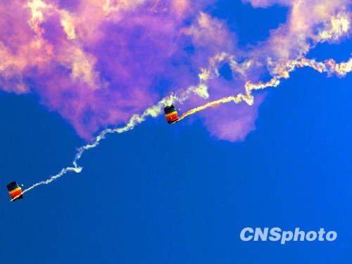 庆祝空军成立60周年跳伞表演犹如仙女散花(2)