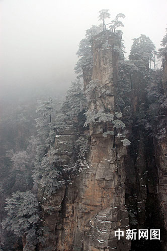 中新网长沙11月16日电(吴勇兵)世界自然遗产湖南张家界武陵源风景名胜区首降冬雪,天子山、袁家界等核心景区一座座俊秀的奇峰已披上银装,景色更加迷人。