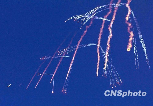 庆祝空军成立60周年跳伞表演犹如仙女散花(4)