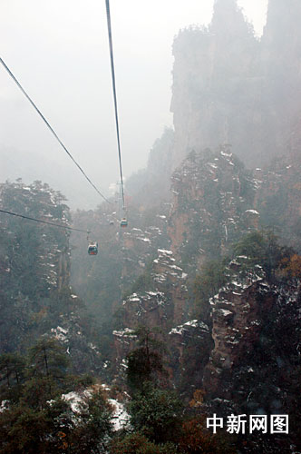 世界自然遗产湖南张家界武陵源风景名胜区首降冬雪,景色更加迷人。