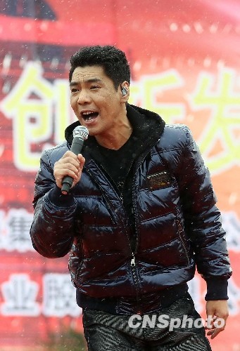 图为歌星屠洪纲在雪中为河南两万工人演出。中新社发 陈代述 摄
