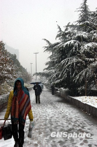 图为武汉市民冒雪出行。中新社发 张畅 摄