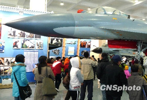 歼-11战斗机吸引了观者的目光。中新社发 玉龙 摄