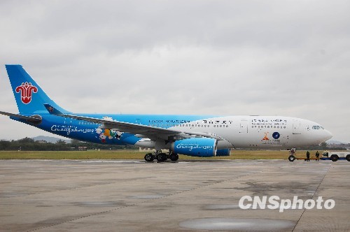 亚运圣火专机“亚运号”亮相。中新社发 柯小军 摄