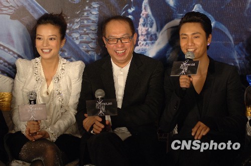 图为(左起)赵薇、马楚成、陈坤发布会上爆笑不断。中新社发 李学仕 摄