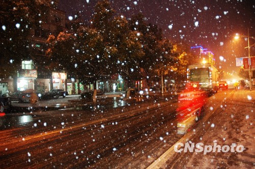 11月16日至17日,受寒潮影响,安徽省黄山区开始降雪。中新社发 葛军 摄