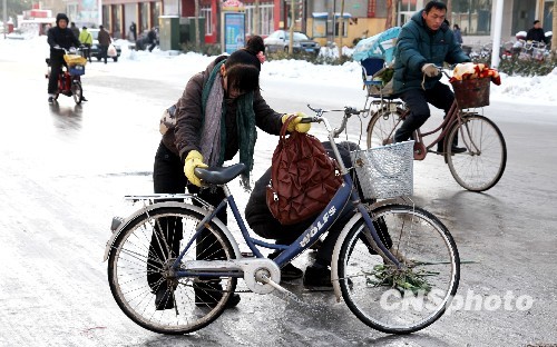 市民不慎摔倒,而路遇市民伸出援手。中新社发 牛书培 摄