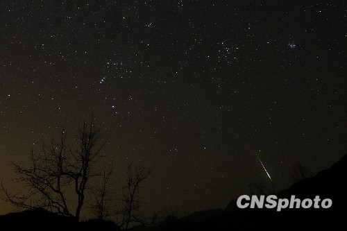 11月18号凌晨,在北京怀柔区,狮子座流星雨清晰可见。中新社发 盛佳鹏 摄