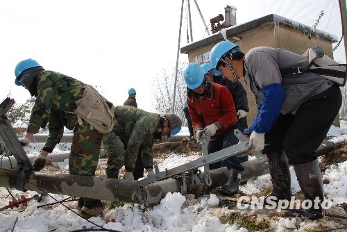 安徽滁州雪灾损毁电力线路 恢复正常供电(3)