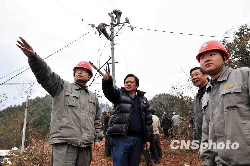 图:湖北南漳全力抢修雪灾损毁输电线路(4)