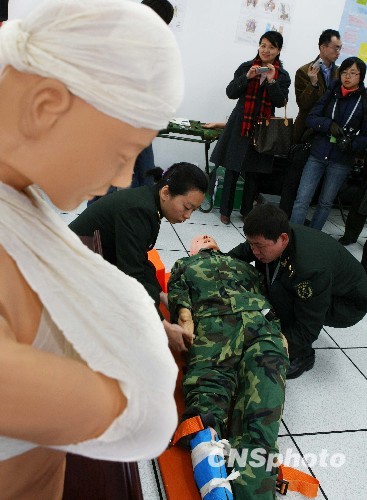 中外记者参观中国国防部维和中心。中新社发 宋吉河 摄