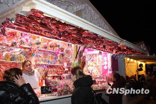 法国巴黎香街“圣诞集市”开张。中新社发 吴卫中 摄