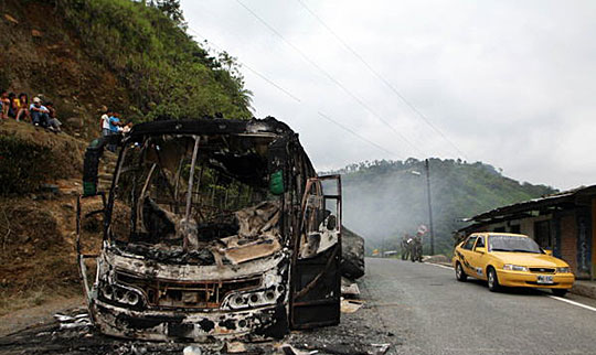 11月20日,在哥伦比亚纳里尼奥省的里考尔特哥反政府组织“哥伦比亚革命武装力量”的武装分子将一辆载满乘客的公共汽车拦截并点燃,造成6名乘客死亡。