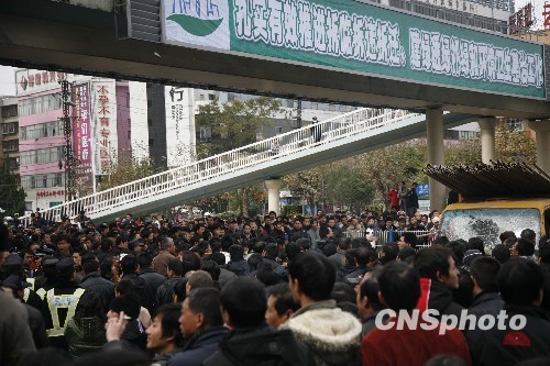 图:昆明商业区拆迁引发商户堵断城市主干道(2)