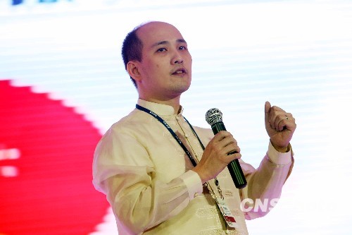 十一月二十一日,第十届世界华商大会上举行“菲律宾投资推介会”,菲资讯及通信科技署长蔡继敦发表主题演讲。蔡继敦是年轻的华裔官员在当地享有盛名。中新社发 洪少葵 摄