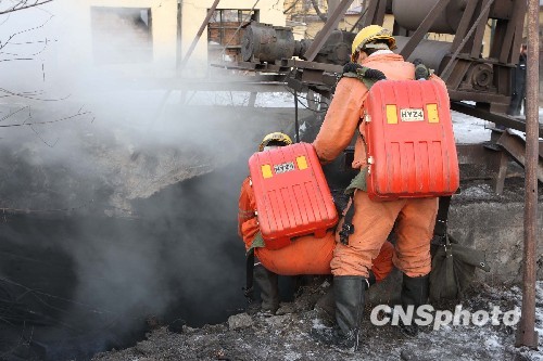 图:鹤岗矿难 救护队正在井下全力搜救(3)