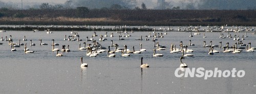 组图:江西九江东湖迎来天鹅越冬抵达高峰(3)