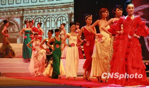 图为佳丽们的晚装表演。中新社发 翟羽佳 摄